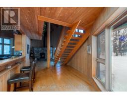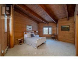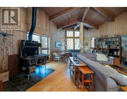 Contemporary home in a 24 acre treed setting on a quiet road in Chatsworth. A winding driveway leads to the private, custom-built home, designed to take in the natural landscape. Soaring ceilings, exposed beams and interesting angles provide spacious rooms. The living room features a grand stone fireplace (wood burning), dining area and kitchen, good sized foyer, 3 piece bath and a screened in porch overlooking the back yard with terraced gardens. The second level features 2 bedrooms, laundry and a 5 piece bathroom. There is interior access from the attached double garage. The property is a series of trails that lead through the hardwood and softwood bush, over the stream and back to the Sugar Shack where maple syrup has been a neighbourhood tradition. The property backs on to a natural pond. Great location approximately 15 minutes to Markdale, 15 minutes to Durham and 20 minutes to Owen Sound. (id:47351)