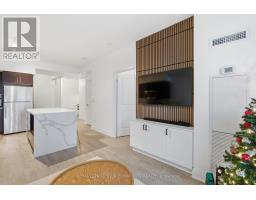 This bright, modern suite showcases elevated finishes, highlighted by a waterfall-style kitchen island and thoughtfully designed accent walls that add warmth and character. The spacious layout offers two full bedrooms plus a sizeable den, and two full bathrooms providing excellent flexibility for your lifestyle. The second bedroom can function well as a home office, while the den is ideal for a dining area or versatile flex space. Located south of the QEW, close to the waterfront, less than five minutes from downtown Oakville, and a short distance to Oakville GO, this location is ideal for both commuters and those looking to stay connected to the Oakville core. Additional building amenities include: Bike Storage, Community BBQ, Rooftop Deck/Garden, Visitor Parking and Concierge! (id:47351)