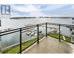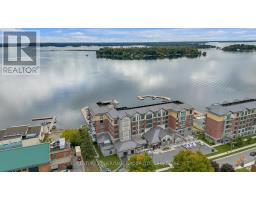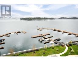 Welcome to luxury waterfront living at the prestigious Stone & South Condos in Gananoque, set along the scenic St. Lawrence River in the heart of the Thousand Islands. This stunning penthouse suite offers breathtaking panoramic views, allowing you to experience the beauty of the islands from the comfort of your own home. Step inside to an elegant and spacious interior featuring soaring 10' ceilings and rich hardwood flooring throughout. The open-concept design is enhanced by modern finishes and thoughtful upgrades, creating a refined yet comfortable living space. The gourmet kitchen is beautifully appointed with high-end appliances, including a gas range, electric oven, dishwasher, drawer microwave, and wine/beverage cooler. A natural gas hookup on the balcony provides the perfect setting for outdoor cooking while taking in the spectacular waterfront views. Designed for both comfort and lifestyle, residents enjoy access to premium amenities including a well-equipped fitness centre, a stylish party room, and beautifully landscaped grounds. Boating enthusiasts will appreciate the private marina slip, offering direct access to the St. Lawrence River. The unit also includes one underground parking space and a storage locker. Located just steps from downtown Gananoque, you are within walking distance to local shops, restaurants, cafes, and the Thousand Islands Playhouse, making this an ideal blend of luxury, convenience, and waterfront living. (id:47351)