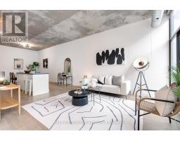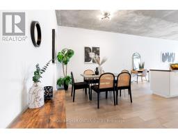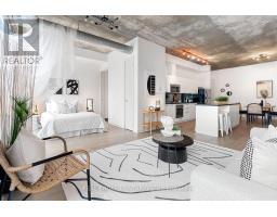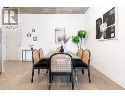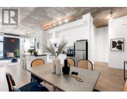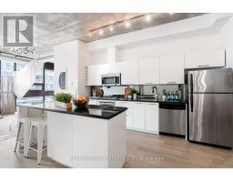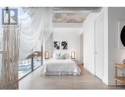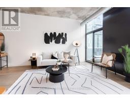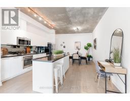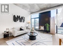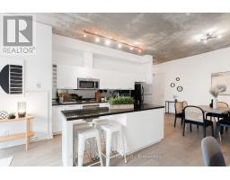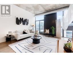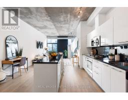 A loft where industrial edge meets inner city energy. You're drawn to industrial loft living. You find calm in the flood of concrete, its cool smoothness, and earth-made stillness. Here, ten-foot ceilings lift the 790-square-foot space. Overhead, exposed ductwork swarms throughout like aerial artwork. Tall windows pull in natural light from dawn to dusk. The newly updated hardwood floors are undeniably beautiful. The bedroom gently wraps around the kitchen. Stainless steel appliances, a gas cooktop, a wall oven, and a built-in microwave line the walls. The indoor living space connects to your outdoor balcony. Think BBQ. If you love to cook, or just need space to spread out a proper takeout, the oversized island, with its generous storage, meets you with quiet understanding. The bathroom includes a deep soaker tub and a rain-style shower-head offering a quiet, spa-like pause. Included is an ensuite laundry. Below ground, your parking space, locker, and bike storage are conveniently located right next to the elevator. Above ground, the rooftop terrace. There's space to lounge, to gather, to gaze, and take a needed breath. Visitor parking makes it easy to host. Since you're wondering, yes, pets are welcome too. Located in King West. Sweat and Tonic, and all The Well has to offer is just around the corner. Stackt Market, transit, grocery stores, restaurants, cafés, and shopping just a short walk away. (id:47351)