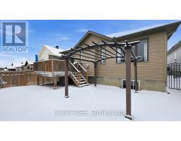 Welcome to 608 Robert Hill Street located in the Riverfront Estates area of Almonte. The Mississippi River and Riverfront Park are just steps away so you can easily walk your kayak or canoe to the dock. Historic Mill Street, the Almonte General Hospital, schools and shopping are all within walking distance. The exterior of the home is stone, stucco and vinyl siding. It has a double car garage, covered porch and parking for 4 cars on the driveway. A good sized deck has steps down to a pergola covered patio. The backyard is fenced and has many Moffatt blue juniper trees. Lawn areas have Hunter/Hydrawize irrigation. This former Doyle/Inverness 1,500 sq ft model home is significantly upgraded. Hardwood plank flooring is throughout the home except for the carpeted stairs to the unspoiled basement and porcelain tiled bathrooms, foyer and laundry room floors. The open concept has an impressive kitchen with a huge quartz island and large number of cupboards as well as a pantry. The dining room is spacious, has plenty of light with a patio door leading to the deck. A vaulted ceiling with pot lights, stone gas fireplace and white mantel highlight the living room space. There are 3 bedrooms. The primary has a walk in closet and ensuite bathroom with separate tiled shower, free standing tub and 2 under mount sinks. A 4-piece bathroom is between the 2 other bedrooms. This home is move in ready. (id:47351)