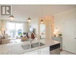 $388.86 MonthlyTop-floor living in the heart of Old Milton - with no neighbours above and beautiful open views from the balcony! This bright 1 bedroom + den condo offers a stylish, functional layout in the sought-after GreenLife building. The open-concept living space features a crisp white kitchen with granite countertops, tile backsplash, stainless steel appliances and a breakfast bar overlooking the living and dining area. Laminate flooring, upgraded lighting and neutral finishes create a fresh, move-in ready feel. The spacious bedroom, versatile den-ideal for a home office or guest space-4-piece bath and in-suite laundry add everyday convenience. Enjoy elevated views from the private balcony, perfect for morning coffee or evening sunsets. GreenLife is known for its eco-friendly design with geothermal heating/cooling and solar panels, helping keep utility costs low. Amenities include a gym, party/meeting room and games/library space. Includes two underground parking spots and a large storage locker. Walk to Mill Pond, downtown Milton shops, restaurants, parks, trails and the GO Station. (id:47351)