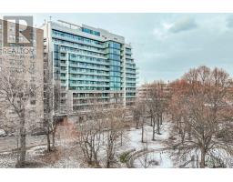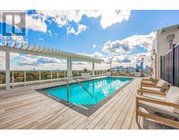 True luxury 1 Bedroom + Den condo with treetop views of Lawrence Park Ravine. This spacious 710 square foot layout is filled with natural light and includes a large open concept kitchen and centre island complete with breakfast bar. The kitchen features abundant storage with pantries and a luxury Liebherr and Miele European appliance package, including paneled built-in appliances for a clean modern look. The living and dining rooms are functionally laid out and large enough for full-size furnishings. Flooring throughout the living and bedroom areas is a premium oak hardwood. The bedroom is daylit and includes a large closet with built-in safe for valuables. The den provides space for a home office, small TV lounge, or room for a murphy bed to accommodate an overnight guest. There are two walkouts to a large balcony with gorgeous east and southeast views. The cream marble bathroom features tile fronted soaker tub and Kohler fixtures. This unit is ideal for young professionals looking for quick access to TTC Lawrence Station, downsizers from the neighbourhood, or anyone looking for a North Toronto pied-a-terre. This exclusive building features an elegant lobby with concierge, huge party room, ground floor outdoor lounge with BBQ area, and luxurious rooftop amenities including a saltwater outdoor swimming pool, outdoor hot tub with fireplace, extensive outdoor seating areas with panoramic city views, and a well equipped gym with spa-like steam room. This building has ample visitor parking and is just steps from the TTC, local shops, cafes, and restaurants. One parking space and locker are included. (id:47351)