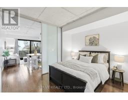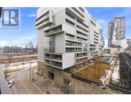 Completed in 2013, River City Phase 1 is a LEED Gold-certified building in the vibrant Corktown and West Don Lands communities, with easy access to Riverside, Leslieville, the Distillery District, St. Lawrence Market, Corktown Commons, the Don River Valley, Toronto's Waterfront Trail, and the DVP. The TTC 504 King streetcar is right at your doorstep with routes 503 and 501. This modern loft-style suite offers approximately 550 sq ft of functional living space, plus a 55 sq ft balcony with composite decking panels. Located on the 6th floor, the unit provides direct access to the interior walkway connecting to the adjoining building and outdoor courtyard and pool. It boasts a superior south-facing exposure overlooking the pool area, flooding the space with natural light. Features include 9-foot exposed concrete ceilings and stylish walnut hardwood flooring throughout. The contemporary white kitchen is equipped with stainless steel appliances, new dishwasher, and grey quartz countertops. The spa-inspired, fully tiled bathroom features a soaker tub, updated vanity and toilet, mirrored cabinet, and convenient ensuite laundry. Outstanding building amenities include 24-hour concierge, outdoor courtyard and swimming pool with community BBQ areas, fully equipped fitness centre, two spacious party rooms with lounge, bar, kitchen, dining area and billiards table, guest suite, and sun deck. Come make the celebrated River City development your home and enjoy the perfect blend of modern living, convenience, and style. (id:47351)