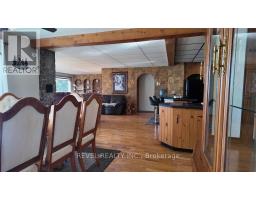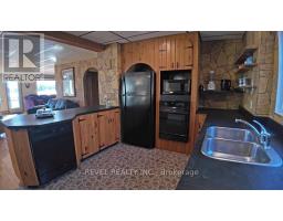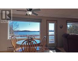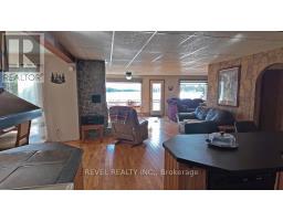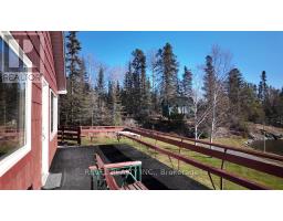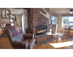 Lakeside Retreat! Discover this freshly painted and beautifully maintained 4-bedroom, 2-bathroom lakeside home nestled on the serene shores of Sesekinika Lake. Set on leased land, this cozy and stylish home offers the ideal balance of comfort, privacy, and natural beauty. Enjoy your own private beach, perfect for swimming, kayaking, or simply relaxing by the water's edge. Inside, you'll find a gorgeous stone wood-burning fireplace that creates a warm, inviting atmosphere-perfect for family gatherings or peaceful evenings in. The open-concept living area flows effortlessly into the custom knotty pine kitchen and dining space, making entertaining a breeze. Large windows frame stunning lake views, filling the home with natural light and a sense of tranquility. Convenient main floor laundry adds to the home's easy-living appeal. Land lease: $2,500 for a 21-year term, able to sign consecutive lease terms for peace of mind. Road maintenance: $400/year, Garbage disposal: $60/year, Association fee: $20/year. Whether you're looking for a year-round residence or a seasonal getaway, this lakeside gem offers everything you need to live your best lake life. (id:47351)