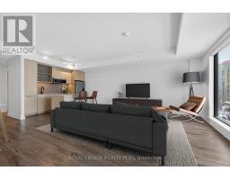 Welcome to Lakhouse. Enjoy the ultimate of upscale, active lifestyle in this Scandi inspired building on the shores of Lake Simcoe. Open concept suite with 9' ceilings and huge windows for lots of natural light. The modern kitchen with quartz counters, island with breakfast bar, pantry, integrated dishwasher, stainless appliances overlooks the living/dining area and a walk-out to the balcony. The oversized balcony is approximately 125 sq feet extends your living space with frameless retractable glass panels combined with clear railings to create true indoor/outdoor living most months of the year. The Primary bedroom has a 3-piece ensuite with glass shower, generous walk-in closet as well as another walk-out to the balcony. Plenty of space for outdoor dining and lounging. The locker is just a few steps down the hall for convenient access. This exceptional resort style building boasts incredible amenities including a fabulous gym and spa with hot tub, sauna and steam room. Elegant lake side common room with bar, lounge, dining room and catering kitchen as well as a large balcony/terrace for panoramic sunrise and sunset views. Two roof top terraces with incredible vistas over the lake, bbqs, dining areas, firepit and a second common kitchen ideal for your snacks or beverages when entertaining. Dedicated storage for your own bikes and paddleboards. Or simply sign out a kayak or a paddle board from the concierge and launch or swim from the community dock. Guest suites available for family and friends to join in the fun. Ideally situated in the centre of Barrie with plenty of shops and restaurants that are just a few steps away along the vibrant main street. Close to many waterfront parks, trails, boardwalk for miles of biking or strolling or an outing at a nearby public beach. Join this active waterfront community of friendly residents, social engagement and understated Scandinavian luxury. (id:47351)