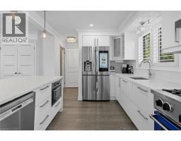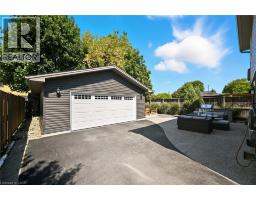 Beautifully updated two-storey home on the Hamilton Mountain! This 3-bedroom, 2-bathroom residence offers modern upgrades throughout, blending comfort, style, and convenience. Ideally situated within walking distance to Lime Ridge Mall, schools, and just minutes to the Lincoln Alexander Parkway with quick access to the QEW for both Toronto and Niagara. The open-concept main floor is designed for entertaining, showcasing a quartz waterfall island, high-end appliances, subway tile backsplash, quartz countertops, coffered ceilings, engineered hardwood, and large windows that fill the space with natural light. Upstairs features three spacious bedrooms and a fully renovated five-piece bathroom with a glass-enclosed shower, separate soaker tub, and double vanity. The finished basement adds extra living space with a rec room, laundry, and a storage room. Enjoy the fully landscaped backyard with exposed aggregate concrete, armour stone, and a built-in BBQ — perfect for outdoor gatherings. A detached 570 square ft two-car garage completes the package, fully insulated, heated, serviced, and finished with an epoxy floor, ideal for a workshop or hobby space. Meticulously maintained with landscaped front and rear yards and numerous recent upgrades, this turnkey property is true pride of ownership. A must-see! (id:47351)