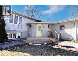 Welcome to this well-maintained raised ranch, perfectly situated on a generous 94 x 129 corner lot with exceptional parking options. Enjoy a cement driveway extended along the side of the home, plus additional parking for toys or trailers tucked behind a 16’ x 14’ shed complete with 220-amp electrical. The beautifully landscaped yard features mature trees that provide excellent privacy during the summer months, along with a newer deck ideal for outdoor entertaining and newer decking on the front porch. Built in 1998, this home includes a 2-car attached garage with inside entry and a bright, functional layout with extra-wide entryway, staircases, and hallways, creating an open and welcoming feel. The main floor offers open-concept living, kitchen, and dining areas, with patio doors leading directly to the deck. Engineered hardwood flows throughout the main level, complemented by ceramic tile in the kitchen, dining area, and bathroom. Three generously sized bedrooms are located on the main floor, including a primary bedroom with cheater access to a large full bathroom. The fully finished basement is enhanced by large windows that provide an abundance of natural light, creating a bright and inviting lower level. This space includes vinyl flooring, two additional large bedrooms, a second full bathroom, a spacious laundry/utility room, and a large open area ideal for a rec room, games space, or bar. Ideally located on the edge of town, this home is within walking distance to local amenities and offers quick access to Highway 401 just down the street, making commuting simple and convenient. This property has been lovingly cared for and is move-in ready, making it an excellent choice for a growing family. Schedule your private showing today before it’s gone! (id:47351)