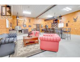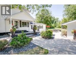 This rare 1865 home combines timeless charm with modern comfort on 4 acres of landscaped beauty. A stunning barn steals the spotlight, complete with a wood-burning pizza oven, bar, games room, and advanced exhaust system-ideal for lively gatherings or cigar nights. Step inside to find a welcoming main floor with a cozy living room and fireplace, updated bath, bright kitchen, and dining area. A serene family room opens to a patio where sunsets paint the sky. Upstairs, three spacious bedrooms include a primary suite with walk-in closet, alongside a full bath. Outdoors, mature trees, a ravine, pond, and waterfall create a private retreat. Additional features include a luxurious mosaic-tiled glass shower, attached workshop with storage, insulated 2.5-car garage, and finished circular driveway. Just minutes from the city, this property offers a one-of-a-kind lifestyle where history, nature, and elegance meet. (id:47351)