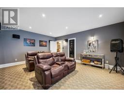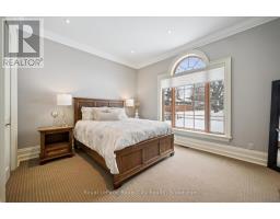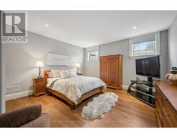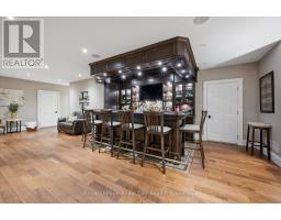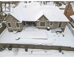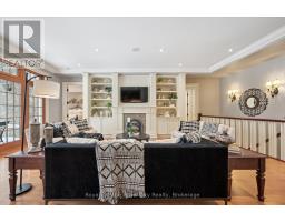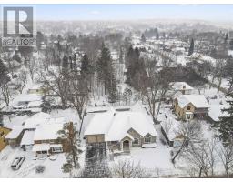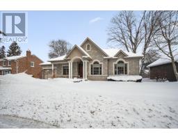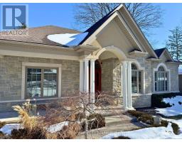 Rarely does a home offer both striking curb appeal and an exceptional location, and this one delivers on every front. Situated in one of Guelph's most desirable family neighbourhoods, steps to St. George's Park, this custom-built residence stands apart for its craftsmanship, thoughtful design, and timeless finishes. From the moment you arrive, the quality is unmistakable. The exterior is finished in Arriscraft Citadel stone, with limestone sills, arches, lintels, and door surrounds. Inside, 10' ceilings throughout the main floor, oversized crown moulding and baseboards, solid 8' interior doors, and a dramatic barrel-vaulted front entry set the tone. The open-concept kitchen is the heart of the home, featuring a large centre island, integrated office nook, and custom Barzotti cabinetry carried through to the bathrooms. The adjoining family room features built-in custom cabinetry, a gas fireplace, and floor-to-ceiling windows overlooking the rear patio, creating a seamless indoor-outdoor connection. The primary bedroom offers a luxurious retreat with a walk-in closet and a stunning 5-piece ensuite featuring a glass shower and a soaker tub. Two additional bedrooms, a 4-piece bathroom, main-floor laundry, and a convenient powder room complete this level. In-floor heating provides exceptional comfort throughout both the main floor and basement, as well as the concrete flooring in the garage. The lower level, alternatively accessed by a separate staircase from the garage, is extraordinarily spacious due to 9' foundation walls, no bulkheads, and clear spans with no support columns. This level includes an additional bedroom, an office, a full bathroom, an incredible bar area, and a home theatre with surround sound, ideal for entertaining or enjoying your favourite sporting events. Don't miss this rare opportunity to own a meticulously constructed home in one of Guelph's most coveted locations, where exceptional craftsmanship and refined living come together seamlessly. (id:47351)