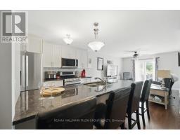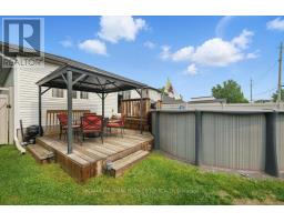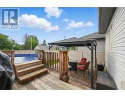 Welcome to this beautifully maintained bungalow in the desirable & charming community of Rockland. From the moment you arrive, you'll be captivated by the homes charming curb appeal. Step inside to discover a spacious front bedroom that easily doubles as a home office or den- perfect for guests or remote work. Gleaming hardwood floors guide you through the open-concept main level, leading to a generous dining area that flows seamlessly into the heart of the home: a beautifully upgraded kitchen. The kitchen boasts rich cabinetry, a striking herringbone backsplash, gleaming granite countertops, & large island w/breakfast bar seating. Just off the kitchen, the sun-filled living room offers ample space to relax or gather with friends & family. Tucked away at the rear of the home, the primary bedroom comfortably fits a full bedroom set & features a large walk-in closet & access to the luxurious 3-piece ensuite bathroom. Also on the main floor is a second full bathroom & a Pinterest-worthy laundry room- designed with both function & style in mind. The professionally finished basement expands your living space with an oversized recreation room that easily accommodates a home gym, media space, or play area. A dedicated home office nook, a spacious third bedroom, & a full designer bathroom with a tiled glass shower & modern vanity complete this level. Theres even plenty of room left for storage in the large utility room. Step outside to your sunny, west-facing backyard oasis. A patio door from the living room opens to a large deck surrounding an above-ground pool- complete with a cozy gazebo, perfect for summer relaxation. The fully fenced yard also features a grassy area & a separate garden shed for extra storage. This fantastic home is ideally located close to Rockland's top amenities, including excellent schools, scenic parks, popular shopping, and restaurants. Its ideal location also offers quick access to the highway making commuting a breeze. (id:47351)