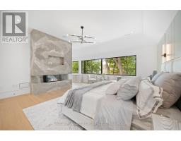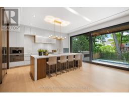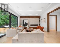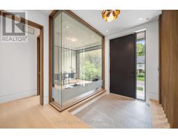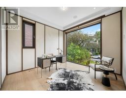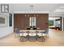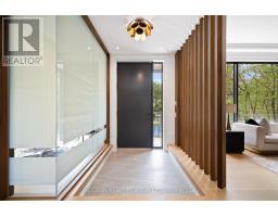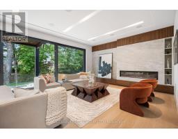 Welcome to this exquisite custom-built 4+2 Bedrm 6 Bathrm home, perfectly situated in the heart of Lawrence Park. Soaring 10ft ceilings, sleek pot lights, and White Oak hardwood flrs throughout. Open Concept living and dining rm creates a spacious environment ideal for entertaining with natural light through the floor to ceiling windows. Living rm boasts a gas fireplace. Dining rm features a wine cellar. Main flr office, complete with smart frosting film on glass offers option for privacy. Grand foyer showcases a walk-in closet with sliding doors, powder rm impresses with designer sink and heated floors. Mudroom off of side entrance with custom closets and bench. Gourmet kitchen is a chefs dream, with built-in Miele appliances, refrigerator, freezer, 6-burner gas range, coffee system, transitional speed oven, and dishwasher. Custom-built center island adorned with luxurious quartzite countertops. Open-concept family room, featuring another fireplace with walk out to deck. Natural light floods the contemporary staircase with skylights overhead. Primary suite offers a serene retreat, complete with a 6-piece ensuite, walk-in closet, gas fireplace, bar with beverage cooler, and speaker system, all overlooking the tranquil backyard. 2nd Bedroom with 4pc ensuite features custom built in closets. 4pc ensuite has caesar stone counter top, tub and heated floors. 3rd & 4th Bedrms offer south facing large windows with shared 3pc ensuite with Custom Vanity w/ Caesar stone Countertop, heated flrs, shower. Mezzanine office with gas fireplace. Lower level offers an expansive rec room, two additional bedrooms (ideal for a gym), 2 3pc bathrms, laundry, and a home theatre. Federal Elevator system. iPort Home Automation System. Hot Tub & Pool. Heated Driveway & Stairs, Front Porch, Rear Deck & Rear Stairs. Camera Security System. Double Car Garage. Sprinkler System. Concrete Deck w/Glass Railing (id:47351)