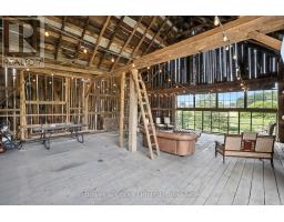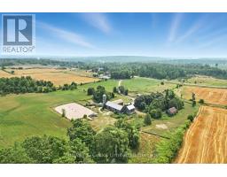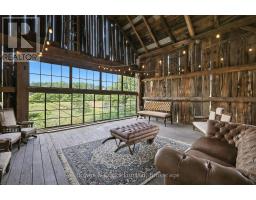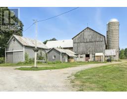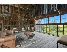 Set against a backdrop of gently rolling fields and just steps from the site of the future hospital complex, this property offers peaceful country living and the ability to host unforgettable events on this 23-acre estate. Down a long, private, gated driveway sits a beautifully preserved century brick home, where modern comfort meets heritage charm. A bright updated kitchen, formal dining room, cozy living area, and 2-piece bathroom make up the main floor, while upstairs features 3 spacious bedrooms and 2 bathrooms. A show-stopping staircase with a glowing lady newel post sets the tone for this elegant home. The south-facing two-storey sunroom floods the home with light, and a vine-covered porch on the east side provides the perfect spot for morning coffee. The multi-use bank barn is an absolute standout: the hay loft has been thoughtfully transformed into an event centre with original wood floors, exposed beams, and a wall of antique windows offering jaw-dropping views. Multiple restroom stalls make it function-ready for guests. Other buildings include a horse barn, grain bin, blacksmith shed, chicken coop, and the original two-storey dwelling. Active hay and grain fields plus horse paddocks round out this unique rural property with business, lifestyle, and legacy potential. A breathtaking and rare opportunity awaits. (id:47351)