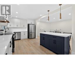 Welcome to this beautifully updated raised bungalow in Roseland, one of Burlington's most sought-after neighbourhoods. Known for its tree-lined streets, strong sense of community, and close proximity to lakefront parks and scenic trails, Roseland offers exceptional lifestyle appeal. You're just minutes from top-rated schools, public transit, shopping, and convenient highway access, making this an ideal location for families and commuters alike. The main level offers a bright, open-concept layout designed for comfortable everyday living. The kitchen and dining area flow into the sun-filled living room, where large windows provide plenty of natural light. The stylish kitchen features quartz countertops and backsplash for a clean, high-end finish, and a striking blue island that creates a sophisticated two-tone design. Three spacious bedrooms and a four-piece bathroom complete this level. New luxury vinyl flooring runs throughout both floors, adding durability and a modern touch. The fully finished lower level, with its separate entrance, is perfectly suited for multigenerational living or in-law potential. It includes one bedroom, a three-piece bathroom, and an eat-in kitchenette. A generous family room with a natural gas fireplace and large east-facing windows provides a warm and inviting space to relax. The home also features a drywalled single-car garage for parking, storage, a gym or workspace. Situated on an impressive 53' x 95' lot, the private backyard offers plenty of room to entertain, garden, or simply unwind. This move-in-ready home combines thoughtful updates, flexible living space, and an unbeatable location-come see it for yourself today. Notables: Windows (2020), roof (2018), furnace and A/C (2012), and a double-wide private driveway resurfaced in 2025. (id:47351)