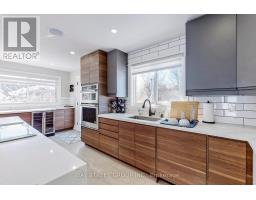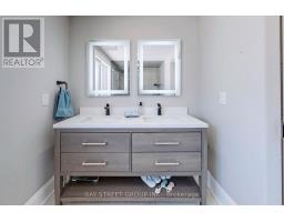 Newly renovated raised bungalow on a main artery in Bradford, situated on one of the largest lots in town. The gourmet kitchen features a dry bar, built-in stainless steel appliances, and walkout access to the deck. The beautifully landscaped backyard includes jacuzzi seating and offers parking capacity for up to 20 vehicles. The primary bedroom offers a heated-floor ensuite, while custom built-in closets and a TV bench add tailored convenience. A large detached six-car garage/workshop with a separate electrical panel provides exceptional utility. Exterior lighting and smart home features complete the package (id:47351)