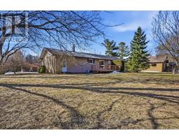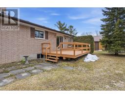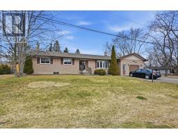 Welcome to easy, comfortable living in this charming ranch-style brick bungalow, perfectly set on a mature corner lot! Enjoy true main floor living at its best, featuring a bright and inviting living room with a beautiful bay window overlooking the front yard. The spacious kitchen is a standout, offering an abundance of cupboard space, a stylish backsplash, a chef's island, and plenty of counter space for cooking and entertaining. The dining room walks out to a deck, making indoor-outdoor living a breeze. The main level also includes three good sized bedrooms, a full bathroom with a walk-in shower and a convenient 2-piece powder room. Downstairs, you'll find even more room to spread out with two large rec rooms, one highlighted by a cozy gas fireplace and brick feature wall. This level also provides a large fourth bedroom, a dedicated utility room, and a substantial storage room to keep your home organized and clutter-free. Stepping outside, the backyard is a private oasis framed by mature trees and lush hedging for ultimate privacy. The outdoor space is equipped with a large deck and two garden sheds for all your tools and hobbies. Parking is never an issue here, as the property features an attached garage and a generous driveway with plenty of room for multiple vehicles. Ideally located just off the 115, this home offers incredible commuter access to both the 401 and 407, keeping you connected to everything you need while enjoying the peace of a established neighborhood. (id:47351)