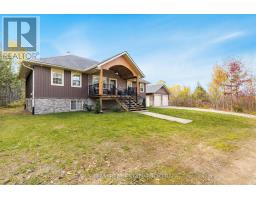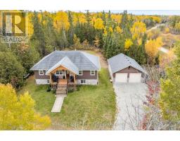 Top 5 Reasons You Will Love This Home: 1) Built in 2018, this 1,370 square foot raised bungalow features a bright and inviting open-concept layout with soaring 10' ceilings, perfect for entertaining and everyday living, while the main level flaunts a warm ambiance with a propane fireplace and central air for year-round comfort 2) Established on over 2-acres of mixed forest, this property offers peace, privacy, and room to roam while being just minutes from Highway 400, Midland, and Barrie, making it the ideal mix of rural tranquility and convenient access to amenities, while being just 1.5 hours from Toronto 3) Indulge in the oversized 24'x28' detached double garage delivering 9' wide doors, 9.5' walls, and plenty of space for vehicles, tools, and recreational equipment, excellent for hobbyists, storage, or anyone who values extra room to work 4) The high and dry basement offers 8'4'" ceilings, large windows, and roughed-in plumbing for a third bathroom, making it an ideal blank canvas for a future family room, extra bedrooms, or an in-law suite 5) Appreciate a spacious 12'x26' rear deck overlooking the natural surroundings, a WETT-certified airtight wood stove rated for 2,200 square feet, a lot survey already included, and an original cottage serving as extra storage, adding even more flexibility to this well-maintained property. 1,370 Above grade sq.ft. plus a unfinished basement. (id:47351)