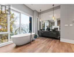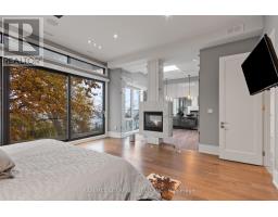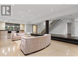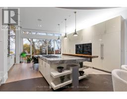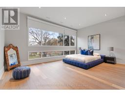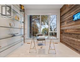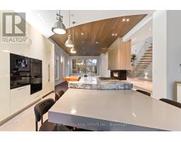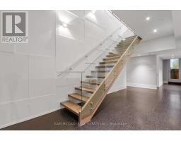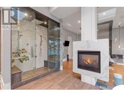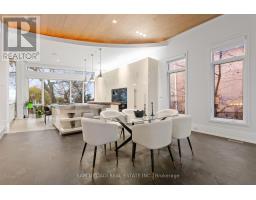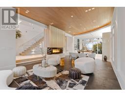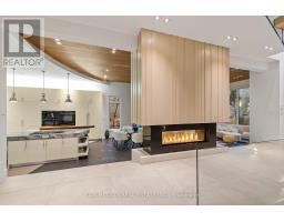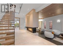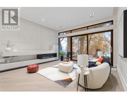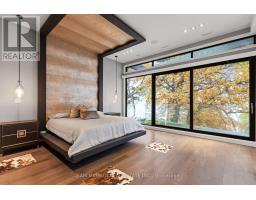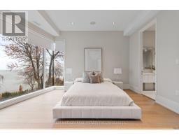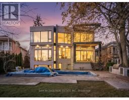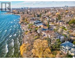 Set along South Etobicoke's prestigious lakefront corridor, this modern estate offers over 6,200 SF of refined interiors paired with resort-style amenities seldom available. Bold in presence and uncompromising in design, it sits behind mature trees with an architectural profile that frames uninterrupted Lake Ontario views. A dramatic open-to-above foyer introduces the home, featuring a floating glass staircase, overhead skylights, and a direct views of the water. The main level unfolds as a sequence of sophisticated living spaces defined by warm wood ceilings, gallery-like walls, and a sculptural double-sided linear fireplace. Near floor-to-ceiling windows wrap the home, inviting natural light and capturing the shoreline from every angle. The chef's kitchen delivers a magazine-worthy experience with Wolf and Sub-Zero appliances, bespoke cabinetry, a custom backsplash, and a striking central island. Adjacent living and dining zones create a fluid setting for elevated entertaining or intimate evenings. Above, 4 serene bedroom suites each offer a walk-in closet and ensuite. The lakefront primary retreat features a boutique dressing room, spa-calibre ensuite with heated floors and a freestanding tub overlooking the water, plus a private balcony for quiet reflections. The lower level extends the home's resort-like character with a recreation lounge, bar, gym, sauna, steam room, wine cellar, and an additional guest suite, opening seamlessly to the tiered backyard. Outdoors, multiple terraces, mature landscaping, a heated pool, a hot tub, and sweeping lake vistas create a breathtaking environment for year-round enjoyment. Additional comforts include a heated driveway, architectural millwork, integrated lighting, and a layout designed for both luxury living and effortless hosting. Moments from waterfront trails, marinas, golf, and downtown Toronto, this estate offers a rare opportunity to own an impeccably crafted lakefront home. (id:47351)