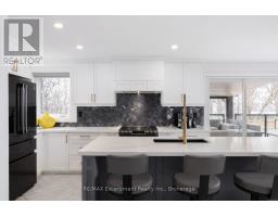 Tucked at the end of a quiet cul-de-sac in Burlington's highly sought-after Aldershot community, this beautifully renovated (2019) home offers an exceptional lifestyle for families and downsizers alike. The sun-filled main floor features an open-concept layout, seamlessly connecting the spacious kitchen with centre island, living room, and formal dining area-all framed by stunning bay views. Floor-to-ceiling windows flood the space with natural light while showcasing picturesque vistas of Burlington Bay and surrounding greenspace. This level also includes a convenient main floor bedroom, laundry room, versatile office, and a stylish 3-piece bath. Upstairs, you'll find three generous bedrooms, including a serene primary retreat complete with a spa-inspired ensuite featuring a soaker tub and skylights. Ideal for multi-generational living, the fully finished lower level offers a secondary kitchen, comfortable living area, 3-piece bath, and a fifth bedroom-perfect for in-laws or a nanny suite-with a walk-up to the backyard. Step outside to a professionally landscaped oasis designed for entertaining, featuring a covered upper porch, spacious dining area, in-ground concrete pool, and a lower-level fire pit lounge. Conveniently located minutes from shopping, top-rated schools, highways, Aldershot GO Station, Royal Botanical Gardens, and golf courses. A rare opportunity to own a turnkey home that blends modern living with nature and tranquility. (id:47351)