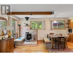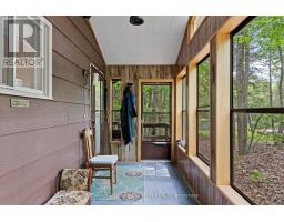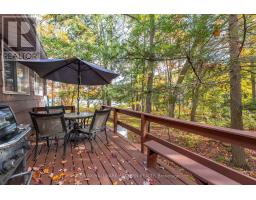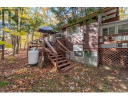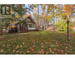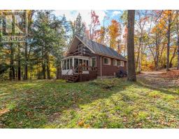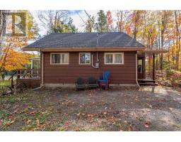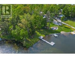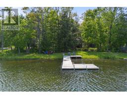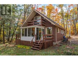 Welcome to your lakeside retreat on Big Bald Lake, part of the desirable Trent-Severn Waterway with access to five lakes without locking. This well-maintained, four season chalet-style cottage offers 150 ft of private shoreline on a beautifully treed lot with level terrain at the water's edge. Featuring 3 bedrooms, a full 4-piece bath, and an open-concept kitchen, dining, and living area with hardwood accents and a cozy propane fireplace. Enjoy peaceful views from the glass sunroom or step outside to the spacious deck and dock for outdoor living. The upper lakeside bedroom includes a walkout balcony for serene morning coffee moments. Recent updates include a new water pump and UV system (2024) and a newly re-shingled roof (2024). Across the lake, 283 acres of privately owned managed forest create a tranquil, undeveloped view. A nearby jumping rock adds fun for the adventurous, and you're just minutes from stunning turquoise waters of Sandy Lake Beach - perfect for swimming and paddling. This turn-key property is being sold fully furnished with all contents included. (id:47351)