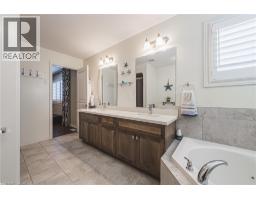 Step inside this stunning 5 bedroom, 2.5 bath, 2748 sq. ft home located directly beside lush greenspace in sought after Binbrook community. Enjoy privacy and open space to the west side of the property giving families additional space to enjoy the outdoors. Thoughtfully designed interior for those who love to entertain. Welcoming large foyer leads to open concept layout flowing seamlessly from a chef inspired kitchen-featuring a large 6-person quartz island, brand new appliances, walk in pantry, stunning extended cabinetry with undermount lighting and ample prep space check off all the I wants in this kitchen. Spacious living area highlighted by a custom stone-faced entertainment wall and rich hardwood floors throughout. Walk out patio doors lead to tastefully and professionally finished backyard space equipped with concrete patio, gazebo and shed. Wood staircase leads to bedroom level featuring 5 bedrooms blanketed in hardwood floors with second level laundry. Luxurious master bedroom features his/her large walk in closets and ensuite bathroom. With roughly 7'5 ceiling height, roughed in full bath, and approximately 1,100 square feet of customizable space, the unfinished basement is waiting for your finishing touches. Great curb appeal highlighted with concrete veranda/steps with aggregate border and professionally installed soffit LED Gemstone Lighting System to welcome you home.Style comfort and functionality come together perfectly in this beautiful modern home (id:47351)