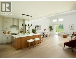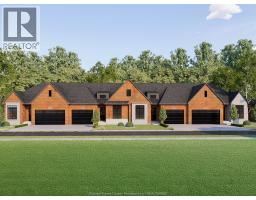 A beautifully crafted brick and stone ranch-style townhome nestled in the heart of Amherstburg’s newest residential enclave. Just minutes from the historic downtown core, this 1470 sq ft end unit blends timeless design with modern living, backing directly onto tranquil greenspace for added privacy and scenic views. This thoughtfully designed 2-bedroom, 2-bathroom single level residence features soaring ceiling heights and striking architectural details inspired by Amherstburg’s heritage and waterfront charm. Red brick, grey stone, and black accents highlight the exterior, while live dormers and a covered rear porch add both character and comfort. Inside, enjoy a bright, open-concept layout with two available kitchen configurations and refined contemporary finishes. The spacious double garage and double drive provide ample parking. Optional finished attic upgrade includes additional storage options. (id:47351)