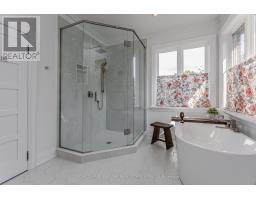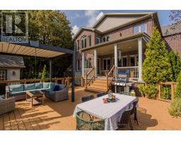 Welcome to 694 Cedar Ave, a rare half-acre oasis in Burlingtons coveted Aldershot neighbourhood, just five minutes from downtown and the lake. Custom built in 2009 with over 4,500 sq ft of finished living space (3,300 above grade) and soaring 9 ceilings, this residence combines timeless craftsmanship with modern updates. The park-like grounds feel more like a country retreat than a city lot. A shimmering saltwater pool with safety cover, tiered deck with custom louvered pergola, covered porch with pot lighting, fire pit, and curated landscaping with maples, poplars, redbuds, and evergreens create a setting that is truly exceptional. Inside, the custom Gravelle kitchen with butlers pantry, walk-in pantry, and wine fridge flows into a sun-filled great room with expansive windows overlooking the gardens and pool. Hardwood floors, an elegant dining room, and a versatile main-floor den complement the space, along with a stylish powder room with heated floor. Upstairs, the primary suite offers dual walk-in closets and a brand-new spa-inspired ensuite with freestanding tub, tiled glass shower, towel warmer, double vanity, and heated floor. Three additional bedrooms include one with its own ensuite, while the main bath also features heated floors. The finished lower level extends the living space with 8 ceilings, oversized windows, a cozy gas fireplace, recreation room, guest suite, full bath, and generous storage. Parking is abundant with a paved driveway for up to nine cars, plus both an attached garage and a detached tandem two-car garage with front and back auto doors. This is a rare opportunity: space, privacy, and natural beauty, all in an unbeatable location. (id:47351)