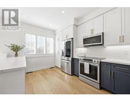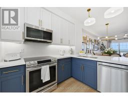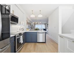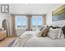 Welcome to lakeside luxury living at its finest. With panoramic views of Lake Ontario from nearly every angle, this sophisticated residence invites you to experience the water as part of your daily life. This 2+1 bedroom, 2-bath townhouse features 1,415 sq. ft. of fully updated living space across three levels, designed to complement its breathtaking waterfront setting. The bright, eat-in kitchen features stainless steel appliances, quartz countertops, two-toned cabinetry, and ample storage-perfect for everyday living or entertaining. The open-concept dining and living area showcases built-in shelving, upgraded lighting, and unobstructed views of Lake Ontario. Step out to your 9' x 15' partially covered balcony complete with a gas BBQ hookup and stairs leading directly to the beach-ideal for summer gatherings and quiet morning coffees. New hardwood stairs with sleek metal banisters lead to the upper level, where you'll find the beautiful primary bedroom with large windows framing more stunning lake views, a second spacious bedroom, and a tastefully renovated 4-piece bathroom. The versatile lower level offers additional living space for a gym, office, or playroom, featuring a walk-out to the private patio and relaxing hot tub overlooking the lake, plus a modern 3-piece bath and inside entry from the garage. Recent updates include: flooring (2023), kitchen and appliances (2023-2025), lower bath (2025), upper bath (2024), hardwood stairs & metal railings (2025), upgraded lighting (2023), custom living room built-ins (2024), hot tub (2023), deck updates (2025), and roof shingles (2021). Enjoy parking for two cars, an EV charger, and a low condo fee that covers snow removal, gardening, and irrigation. Savour evenings by the fire with neighbours, paddle boarding or kayaking from your backyard, and the soothing sound of waves at night. Just minutes to restaurants, shopping, Confederation GO Station, and downtown Burlington-this is turn-key lakefront living at its best. (id:47351)