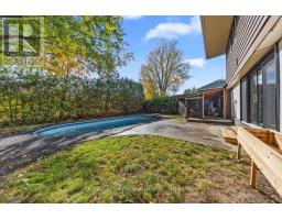 Remarkable 4 bed, 3.5 bath single family home sitting on a quiet cul de sac in the sought after neighbourhood of Beaverbrook, Kanata. Oversized driveway w/ double car garage and interlock stone walkway leading to front entry with glass panelled front door w/ soldier window. Extensively renovated kitchen w/ oversized center island, quartz countertops, stylish floor to ceiling shaker cabinets w/ soft close, sleek black hardware, recess pots lights, top of the line stainless steel appliances w/ gas stovetop, subway tile backsplash. Walk-in pantry w/ glass sliding barn door for additional storage. Living room w/ flat ceilings, wood burning fireplace and large bay windows flooding the space w/ natural light. Dining room w/ modern oversized tile flooring and glass sliding doors to access the backyard. Powder room w/ upgraded quartz countertop vanity. Main floor interior access to the garage off of the spacious mudroom. 4 generously sized bedrooms upstairs; primary bedroom w/ large wall closet and 3 piece ensuite w/ heated tile flooring, stand up glass shower and stylish hexagonal tilework. Second full bath w/ quartz countertop double vanity and sinks, and linen closet complete the second floor. Fully finished basement includes a large rec room w/ wide plank vinyl flooring and recess pot lights as well as an additional full bath w/ stand up shower. Lower level laundry and plenty of storage space. Spacious private backyard w/ in ground heated salt water pool, gazebo w/ shingled roof. The neighbourhood has gorgeous mature trees and is located just minutes away to top rated schools, several parks and walking trails, and all amenities. (id:47351)