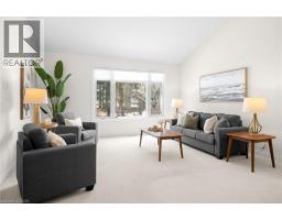 If you’re seeking an exclusive adult lifestyle community, Foxboro Green may be the perfect fit. Ideally located just 10 minutes from Kitchener-Waterloo and adjacent to Foxwood Golf Course, this lovely, well-maintained 1,300+ sq. ft. bungalow (Pine Model) offers 2 bedrooms, 3 bathrooms, a partially finished basement, and a 1.5-car garage. The inviting foyer overlooks a spacious living room with vaulted ceilings and a large picture window showcasing serene views of the private backyard. The main level features a separate dining room, convenient main-floor laundry, and a bright eat-in kitchen complete with quartz countertops, California shutters, and sliding doors leading to a deck overlooking the peaceful yard. Also on the main floor is a generous primary bedroom with walk-in closet and 3-piece ensuite, a second bedroom, and a 3-piece main bath. The lower level provides a cozy finished rec room with gas fireplace, an additional 3-piece bathroom, and ample storage/utility space. Residents of Foxboro Green enjoy exceptional amenities at the community Recreation Centre, including an indoor pool, sauna, whirlpool, tennis and pickleball courts, gym, party room, library, and more, along with 4.5 km of scenic walking trails throughout the community. Embrace an active, maintenance-friendly lifestyle — book your showing today. (id:47351)