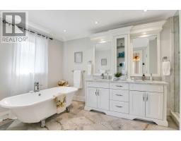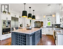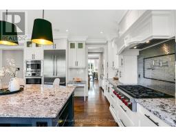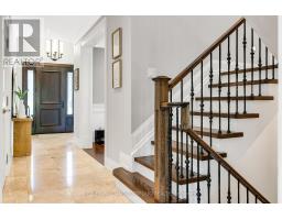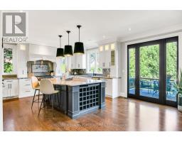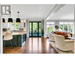 Experience refined, turnkey living in this stunning Eatonville home, where timeless elegance meets modern functionality. Soaring ceilings, custom millwork, coffered and tray accents, and expansive windows create light-filled, inviting spaces for family life and entertaining in style. The chef-inspired kitchen, complete with natural stone counters, stainless steel backsplash, butlers pantry, built-in ovens, and a 6-burner stove with pot filler, flows seamlessly into the family room and out to a private, fully fenced backyard with a large deck framed by towering mature trees. Thoughtful touches continue throughout the home with hardwood floor inlay, skylights, built-in speakers, gas fireplaces, accent lighting, and a convenient main-floor office. Upstairs the primary suite offers two walk-in closets and a spa-like 5-piece ensuite with clawfoot tub, while the additional bedrooms feature en-suite access, custom shutters, and heated floors in bathrooms. The finished lower level with walk-out expands living and entertaining options and features a spacious rec room, wet bar, laundry centre, full bathroom, and flexible rooms for gym, media, or guest accommodations. This home offers ample storage areas including a large loft in the garage, perfect for seasonal storage. Centrally located, steps from parks, top schools, transit, shopping, and the Kipling GO and subway hub, every detail in this custom home supports a lifestyle of comfort, elegance, and effortless day-to-day living. (id:47351)