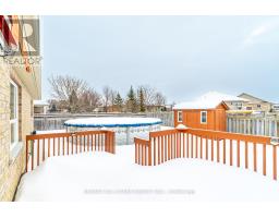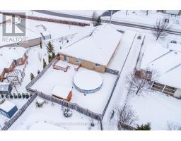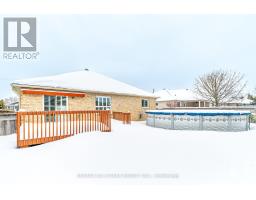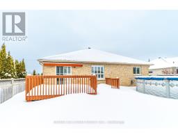 Spacious all brick Lindsay bungalow approximately 1640 sqft. Original Builder's upgraded model home. Well located oversized lot near the Logie Street Park and paved riverfront trail. Covered front porch, fully fenced yard with above ground pool and custom shed. Open concept modern designed home with towering vaulted ceilings, hardwood flooring, both quartz tops and custom made California shutters throughout. Main floor laundry (includes pedestal washer/dryer) and double garage entry. Primary bedroom with walk in closet, ensuite with soaker tub and separate big tiled shower. Vastly enhanced kitchen with island and all appliances. Huge unfinished basement includes rough in for bath and/or kitchen. Roof reshingled, new eaves and facia all in 2024. (id:47351)