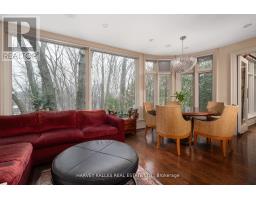 This expansive, four +2, bedroom home, sits on a rare and immense 61' x 252.5' ravine lot, minutes from the city's finest amenities. This Forest Hill home features interiors curated by Eric McLelland of Fleurs d'Lis Design. Defined by soaring 10-foot ceilings, the home showcases unique, high-end finishes, including Venetian Glass Panels, Mother of Pearl accents & silk upholstered walls to name a few. The expansive layout includes a versatile finished attic space and a spectacular finished basement with a nanny live-in unit, multiple walkouts to the ravine and expansive patio area with water feature, a large glassed in sunroom with in-floor heating, as well as an indoor gym, sauna & hot tub. Plus, a significant three level back extension maximizes this home's living space & is complemented by a 2021-installed elevator that services all levels but the attic/third level for ultimate convenience. 7 Ridgewood Road is an architectural statement in a highly sought-after Toronto location. (id:47351)