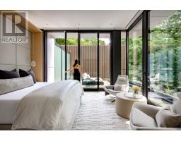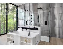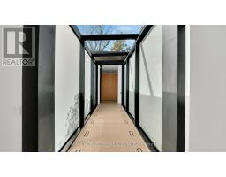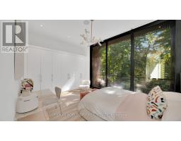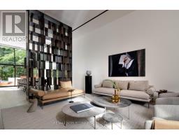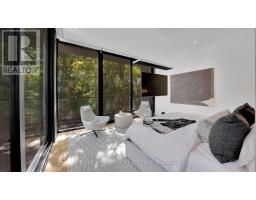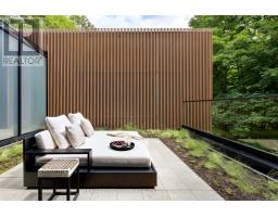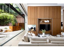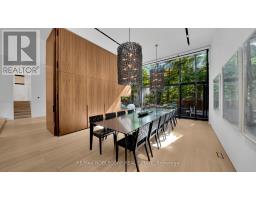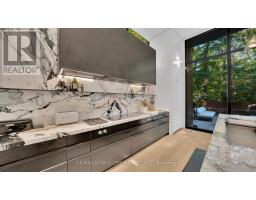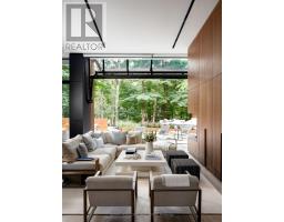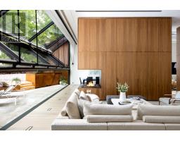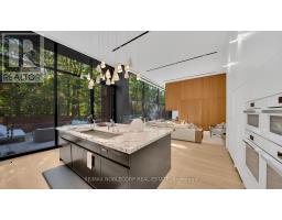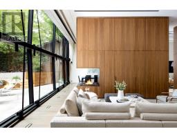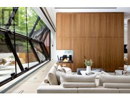 Inspired by the precision and versatility of a Swiss Army knife, this internationally award-winning, architecturally significant residence offers over 6,000 sq.ft. of luxury living on a private, forested ravine cul-de-sac. Designed with dynamic multi-level functionality, its dual wings are connected by a sleek glass bridge and clad in a striking blend of reflective titanium, simulated walnut, and rich black Palisade panels. A descending entrance introduces the main living area where a panoramic fireplace anchors open-concept spaces extending to the outdoors through a dramatic, folding glass hangar door. Every detail is engineered for seamless living and entertaining from the indoor/outdoor dining areas, hidden wine closet, and wet bar to the amenity-rich lower level featuring a full kitchen, gym, and theatre. The primary suite is a true retreat with his-and-hers closets, a spa-inspired ensuite, and a private balcony overlooking the ravine. Outside, a tiered infinity pool, integrated outdoor kitchen, and fire table are enveloped by nature, creating a breathtaking, resort-like oasis. (id:47351)