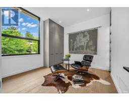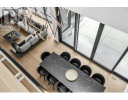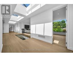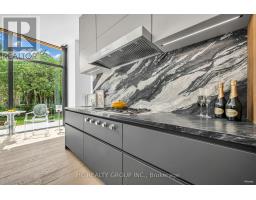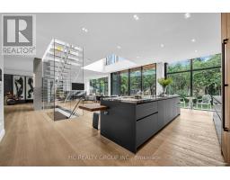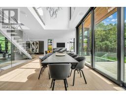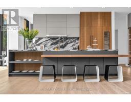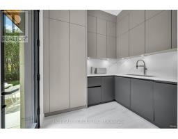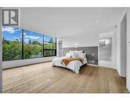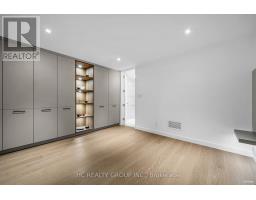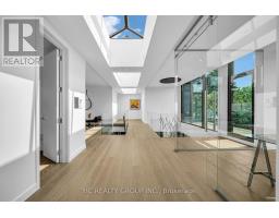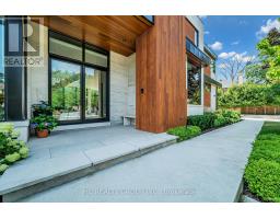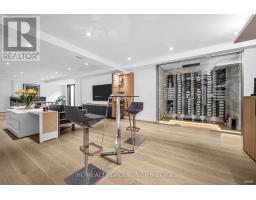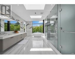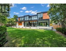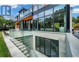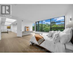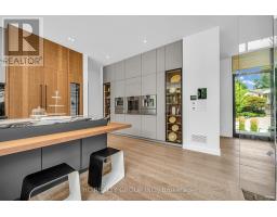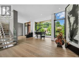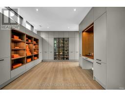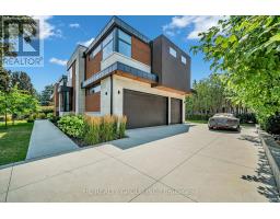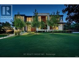 An extraordinary modern estate of distinction, privately set on a tranquil cul-de-sac on a rare 107.34 foot frontage lot, showcasing a refined interplay of glass, stone, and light. Designed by award-winning architect David Small, the residence features polished Ontario white marble, European aluminum-clad wood windows, and professionally landscaped grounds with mature evergreens, integrated outdoor elements, and a full irrigation system. A generous three-car garage with extra-high ceilings accommodates vehicle lifts. The main level offers a guest bedroom and a gourmet kitchen with top-tier appliances and a walk-in pantry, complemented by radiant heated floors, wide-plank European white oak, floor-to-ceiling windows, and a striking 23-foot dining room ceiling with sculptural chandelier. Floating stairs with sleek glass railings elegantly connect all levels. The upper level presents a lounge, office, and four ensuite bedrooms, including a luxurious primary retreat with a spa-inspired ensuite featuring heated floors, dual custom marble-lite floating sinks, and an expansive dressing room with premium custom cabinetry and integrated LED lighting. The lower level is designed for elevated living, featuring a recreation room, climate-controlled wine cellar, nanny suite, and fitness room. Over $500,000 in premium custom German cabinetry throughout the home unifies the interiors with exceptional craftsmanship, modern elegance, and refined luxury. (id:47351)