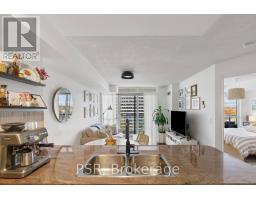 Here it is! Your very own High Park haven. Where history meets the horizon, this stylish one bedroom, one bathroom suite, with its large entertainer's balcony and al fresco sunset views, is the perfect accompaniment to the building's striking classical grandeur born of a heritage church site. Featuring a flawlessly functional layout, a beautifully renovated kitchen with granite countertops and new appliances. Storage is never an issue with the entrance's generous closet, the bedroom's double closet with built-in wardrobes, and a locker for any seasonal items. Designer touches are found all throughout: foyer accent-wall of playful fronds; straw-toned ceramic backsplash; remote-operated blackout blinds; and the woven bedroom light fixture. All awash in an abundance of natural light streaming through the floor to ceiling windows add to overall warmth. One of the showcase amenities is a ground-level, grassy courtyard with a BBQ that's perfectly suited for starlit soirées with friends and family. This legacy location marries the pulse of the city and the rhythms of nature. You're three minutes to the Subway and High Park's 400 acres of wanderlust where you can meander the leafy trails, and picnic under ancient oaks. Shop from hundreds of boutique, grocers, brewers, cafes, and restaurants along the adjacent Bloor West Village. (id:47351)