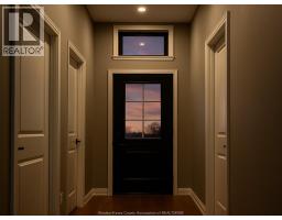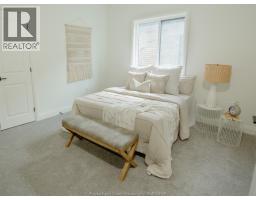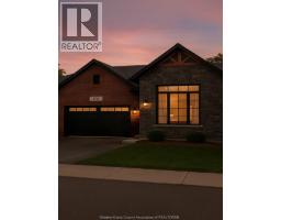 A beautifully crafted brick and stone ranch-style townhome nestled in the heart of Amherstburg’s newest residential enclave. Just minutes from the historic downtown core, this 1240 sq ft end unit blends timeless design with modern living, backing directly onto tranquil greenspace for added privacy and scenic views. This thoughtfully designed 2-bedroom, 2-bathroom single level residence features soaring ceiling heights and striking architectural details inspired by Amherstburg’s heritage and waterfront charm. Red brick, grey stone, and black accents highlight the exterior, while live dormers and a covered rear porch add both character and comfort. Inside, enjoy a bright, open-concept layout with two available kitchen configurations and refined contemporary finishes. The spacious double garage and double drive provide ample parking. Optional finished attic upgrade includes additional storage options. (id:47351)