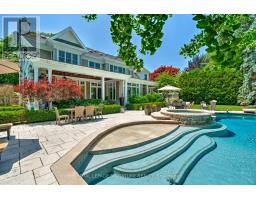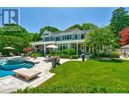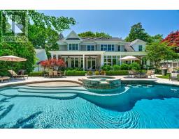 Welcome to 71 Ennisclare situated on one of Oakville's most exclusive streets, this residence is hitting the market for the first time since 2008. Built by Covington Estates to the highest standard, it promises to impress even the most discerning buyers. Designed with a smart, functional layout, the home features 10-foot ceilings throughout the main floor. At its heart is a bright, open kitchen and family room, ideal for both daily living and entertaining. A formal dining room, inviting sitting room, office and a well-planned mudroom connecting the 2.5-car garage directly to the backyard and pool complete the main level. Upstairs offers four bedrooms plus a versatile bonus room, highlighted by vaulted ceilings and skylights that flood the space with natural light. The primary suite serves as a private retreat. Throughout the home, you'll find five fireplaces, stunning millwork, wide-plank oak floors, and extra-tall baseboards which speak to the quality finishes throughout. The fully finished lower level boasts 10-foot ceilings, a home theatre, bar, sauna, and wine cellar. Outside, the 100 x 160-foot lot is just steps from the lake and showcases a private backyard oasis with a covered patio, outdoor fireplace, built-in speakers, pool, and hot tub.This timeless home was built to last and must be experienced in person. (id:47351)