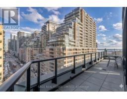 Experience the best of summer with this rare 500-square-foot wraparound terrace and gas line hookup - Liberty Village's premier outdoor living opportunity. This corner 3-bedroom + den residence at 135 East Liberty offers breathtaking unobstructed lake views from its expansive south-east terrace, complemented by custom motorized floor-to-ceiling blinds throughout. Built in 2021, this modern suite showcases thoughtful design throughout - from 9-and-a-half-foot ceilings and floor-to-ceiling windows without bulkheads, to engineered hardwood floors and sound-attenuated windows that create a peaceful sanctuary above the city. The intelligent layout maximizes privacy with most walls unshared with neighbours. The chef's kitchen features premium finishes including quartz countertops and backsplash, custom island, stainless steel appliances (integrated fridge/dishwasher), and soft-close cabinetry. Adjacent custom bar area with beverage/wine cooler and built-in console creates the perfect entertaining space. Three generous bedrooms include a primary suite with south-facing lake views, direct terrace access, and 4-piece ensuite. The versatile second bedroom functions perfectly as a home office for work-from-home professionals. Corner third bedroom boasts eastern city views through a wall of windows. Premium building amenities (gym, party room, rooftop terrace, communal BBQs, shared workspace, concierge), one indoor parking spot, and a premium locker (close to parking space - huge bonus). Steps to Trinity Bellwoods, King West entertainment, Liberty Village dining, and waterfront trails. Easy access to Gardiner/DVP, Exhibition GO and Waterfront Streetcar loop, for commuters moving to the city. Maintenance: $1,035.32 includes heat, cac, common elements, internet and building insurance. (id:47351)