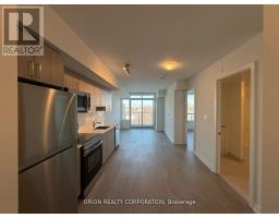 Discover modern living in this brand-new 1 bed + den condo with a private balcony, perfectly situated just a 4-minute walk to transit and close to all amenities, including shops, dining, and entertainment. It is steps away from Glencairn Station, TTC Transit, close to Yorkdale Mall, Downsview Park, and major highways. This east-facing unit is filled with natural light, creating a bright and welcoming space. Enjoy the convenience of ensuite laundry. With its open-concept layout, sleek finishes, and a prime location, this condo offers the ultimate combination of comfort and convenience with modern finishes and stainless steel appliances. This unit also includes 1 parking spot and a locker. Pictures were taken prior to current tenants. (id:47351)