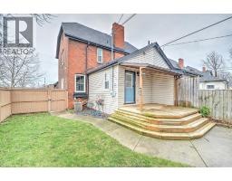 Step into this charming and historically significant 2-storey home, originally built by Hiram Walker. Blending old-world character with modern updates, this turn-of-the-century gem still features exposed brick, a classic covered front porch, hardwood floors, and a rare double staircase. The main floor offers a spacious open-concept living and dining area, a bright office or den that could also serve as a third bedroom, a renovated kitchen with new appliances, and a convenient powder room. Upstairs, you’ll find two bright bedrooms, a full bathroom with a beautiful stand-up shower, and laundry. Zoned for commercial and/or residential use, this property offers great potential for live/work flexibility. The backyard is fully fenced and landscaped with a covered deck, two parking spaces, and a wired storage shed ready for an EV charging station. (id:47351)
