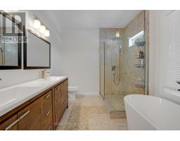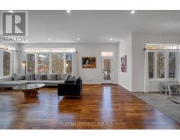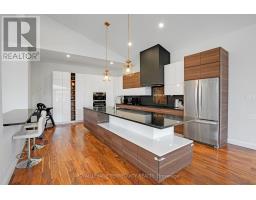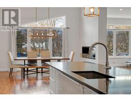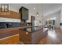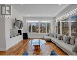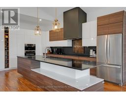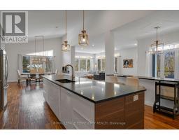 716 North Shore Blvd E is a bold architectural statement set within one of Burlington's most prestigious pockets. Defined by clean modern lines, striking geometry, and a curated mix of concrete-toned stucco and warm wood accents, this residence commands attention before you even step inside. The design is confident. Intentional. Unapologetically contemporary. Beyond the oversized custom entry, soaring ceilings and expansive walls of glass immediately draw in natural light, creating a gallery-like atmosphere throughout the principal living spaces. Wide-plank hardwood floors run seamlessly across an open-concept layout designed for elevated entertaining and refined everyday living. The chef's kitchen is a sculptural focal point - sleek custom cabinetry, waterfall-edge island, integrated storage, statement pendant lighting, and premium appliances framed by a dramatic hood feature. It is both minimalist and powerful - a space designed for gatherings that flow effortlessly into the dining and living areas. Floor-to-ceiling windows wrap the home in light, blurring the line between indoors and the surrounding mature landscape. The living room offers panoramic treetop views and a serene, elevated vantage point rarely found in this coveted location. Private quarters are thoughtfully positioned, offering generous proportions and spa-inspired baths designed with clean lines and modern finishes. The lower level continues the home's contemporary vision with impressive ceiling heights and flexible living space ideal for guests, wellness, or recreation. Set moments from the lake, Burlington Golf & Country Club, downtown dining, and scenic waterfront trails, this property offers the rare balance of urban proximity and natural tranquility. For the discerning buyer seeking architectural integrity, privacy, and presence with a strong address. (id:47351)