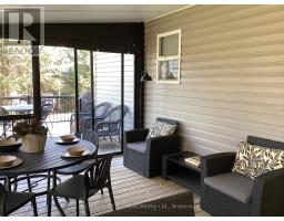 AIR BNB POTENTIAL! Experience Muskoka seasonal cottage living from May to October in this 2 bedroom, 1 bathroom upgraded mobile home unit! Nestled in a well treed quiet area of the Resort, perfect for family and friends. Close proximity to amenities, including a short walkor golf cart ride to the beautiful beach. The Lake is spring fed with a hard sand bottom. Upgrade/largescreen room for additional living space. Deck with BBQ/fire bowl and outdoor chairs for you and yourguests. A multitude of scheduled activities and events for all ages free of charge. Kayaks, canoes, andpaddle boards are available free for your use all season from May 1 to October 31. Resort fees include lawnmaintenance, hydro, sewers and water. You can choose to become part of the Resort Rental Program forthe times you are not using the cottage. All furnishings and appliances -television -bbq -Fully equipped Kitchen -All items required to be on the rental program,if you choose to do so, Dishwasher, Furniture, Gas Stove, Refrigerator, Bar Fridge in Screenroom, Outside patio table and 4 dining chairs, internet and two tvs, umbrella on outdoor dining table, fire pit and chairs. Click on the multimedia button below, for a virtual tour of the unit. (id:47351)