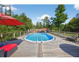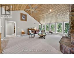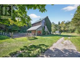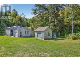 Welcome to your private 48.39-acre sanctuary - a rare opportunity to escape the city and embrace a simpler, more fulfilling way of life. As you wind down the secluded driveway, three majestic old-growth white pines, known as the Three Sisters, stand as timeless guardians of this serene retreat.The custom-built bungalow offers generous living space with cathedral ceilings, a double-sided gas fireplace, and triple-pane windows framing stunning views of the pond, creek, and landscaped grounds. The main level features a spacious kitchen with walkout to the deck, a primary bedroom with ensuite, main-floor laundry, and inviting family spaces designed for comfort and connection. The finished lower level adds incredible versatility with a large recreation room and wood-burning fireplace, two additional bedrooms, an updated bathroom, and two flexible grooming rooms that can easily be tailored to your needs - ideal for hobbies, multi-generational living, or a home business. A walkout to the backyard and garage completes the space. Outdoors, the possibilities are endless. A century barn with hay loft, two paddocks with direct trail access, a sugar shack, chicken coop, and fenced area for pets create the perfect setting for hobby farming or equestrian pursuits. An expansive four-bay drive-in shed with oversized doors provides ample storage for boats, tractors, or collector cars. Trails wind through a beautiful blend of old-growth forest and open meadows, perfect for riding, hiking, or exploring nature. In summer, enjoy the 18x33 above-ground pool with full deck and tiki bar for effortless entertaining; in winter, cozy up by the fire and watch snow fall across your private oasis. With numerous updates and the option of a forest management plan for potential tax savings, this remarkable property is both practical and inspiring - a true retreat ready for its next chapter. (id:47351)