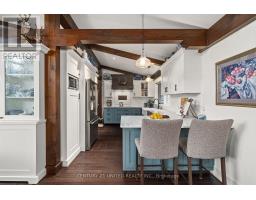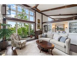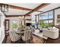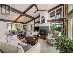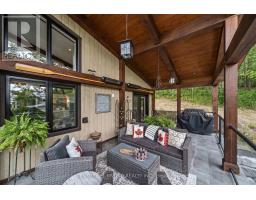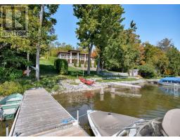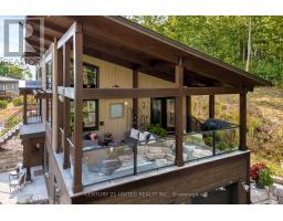 Architecturally intentional and expertly engineered, this 2020 Discovery Dream Home was designed for those who value privacy, elevation, and refined everyday living. Set high on a double lot with expansive lake views, the home includes deeded waterfront access with a private dock-offering a lakeside lifestyle without the maintenance of direct waterfront ownership. Inside, soaring 13-foot vaulted ceilings, exposed timber beams, and precision craftsmanship define the open, light-filled interior. The layout is intentionally designed for couples, professionals, or those downsizing without compromise-featuring two spacious bedrooms and a dedicated sauna and gym retreat with shower, easily converted to additional living space if desired. The primary suite offers a luxurious ensuite with soaker tub, while two additional powder rooms support both daily living and entertaining. An oversized screened-in deck with vaulted ceiling and integrated heating extends the main living space year-round, positioned to take in the surrounding lake and natural setting. Armour stone landscaping, established gardens, and a double heated garage complement the home's elevated setting-shared by neighbouring executive residences along the hillside. Additional features include a lifetime-warranty roof, Energy Star-rated windows and doors, and meticulous attention to long-term performance and comfort throughout. Located just 10 minutes to Peterborough and approximately one hour to the GTA, this is a rare opportunity for buyers seeking architectural beauty, privacy, and a home designed around lifestyle. (id:47351)