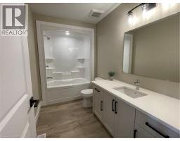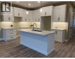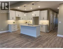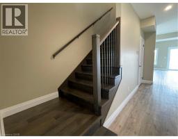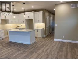 Have you been looking for a brand new townhouse in one of Elmira’s newest subdivisions? This one backs to a walking trail and overlooks farmland and great sunsets! Only 10 minutes from Waterloo. Almost 1700 sq feet with a spacious open concept main floor with white cabinetry, island, stone countertops and 2pc. washroom. Vinyl plank flooring throughout (both levels). Lovely wood staircase. Three bedrooms, 2 baths (ensuite with large walk-in shower) and laundry room upstairs. Large window in the future rec room area. Top quality windows. Still time to choose your colours! Spacious single garage w/opener. Deck and 1st layer of asphalt driveway included. (id:47351)