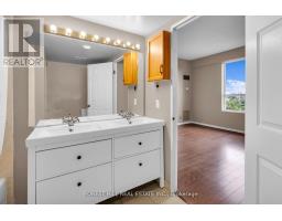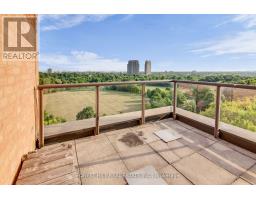 Rarely offered south-facing corner suite with a terrace, sweeping views, and 1,184 sq. ft. of bright, functional living space. This spacious two-bedroom plus enclosed den home offers a highly practical layout, with open-concept living and dining areas flowing into a galley kitchen with a breakfast nook. Both bedrooms overlook Humber wood Park, filling the suite with natural light and a peaceful green outlook. Recent updates include laminate flooring throughout, fresh paint, and new stainless steel appliances. The enclosed den offers excellent flexibility as a home office, guest room, or potential third bedroom. The primary bedroom features a walk-in closet and a spacious ensuite with double sinks, a walk-in shower, and a separate tub. A second full bathroom with an updated vanity, double hallway closets, and a separate laundry room add to the suite's practicality and comfort. Complete with two parking space and an owned locker, this residence also offers access to an impressive range of amenities, including a pool, concierge, sauna, outdoor lounge and BBQ area, billiards room, fitness centre, party room, security system, library, games room, and bike storage. Conveniently located steps to TTC transit and moments from Highway 427, with easy access to parks, trails, and everyday amenities + Harbour LRT. (id:47351)