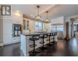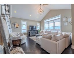 An exceptional home in the heart of North Bay, where thoughtful design meets breathtaking views. This stunning custom-built two-storey home (2015) offers panoramic views of the city and Lake Nipissing, creating a truly special setting. From the moment you arrive, the property impresses with an interlocking brick driveway, attached 1.5-car garage, and welcoming front entry. Inside, the main floor is well designed with a convenient den and powder room, leading into a bright open-concept living space created to maximize natural light and scenery. The custom kitchen is a true centrepiece, featuring a large island, premium built-in appliances, and everything a home chef could need. The adjoining dining and living areas flow seamlessly, framed by expansive windows, while the vaulted ceiling enhances the sense of space and creates a warm, inviting atmosphere. Step outside to one of two private balconies-perfect for outdoor dining, morning coffee, or evening relaxation while taking in the views. Upstairs, the primary suite offers a private retreat with its own balcony, ideal for enjoying North Bay's sunsets, along with a walk-in closet and direct access to a spacious 5-piece bathroom with a separate water closet. A generous second bedroom and dedicated den area complete the upper level. The fully finished walk-out lower level provides additional living space and opens onto a beautiful stamped concrete patio with a covered hot tub, making it perfect for year-round enjoyment. This level also includes two additional well-sized bedrooms, a full bathroom, laundry, and a utility room. Tucked neatly under the stairs is a new custom-built infrared sauna, offering a private, spa-like experience at home. With its central location, well-planned layout, and seamless indoor-outdoor living, this home is a rare opportunity to enjoy some of the best views North Bay has to offer. (id:47351)