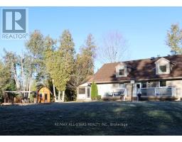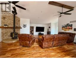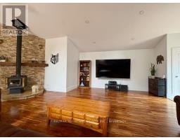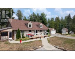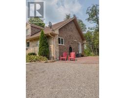 A TRULY REMARKABLE PROPERY- This stunning brick and stone bungalow sits on a 50 acre lot, offering the perfect blend of elegance and tranquility. Ready for you to move in, the home features a chef's kitchen equipped with custom cabinetry and vaulted ceilings, complemented by a cozy wood-burning fireplace in the spacious living area. Designed for comfort, style and functionality, the home boasts three generous bedrooms (or 2 bedrooms and 1 office) with double closets and two luxurious bathrooms, both with heated floors. Expansive windows throughout frame picturesque views and let the sunshine pour in, making the interiors feel open and airy. Extraordinary entertaining area with a mini bar, sauna, outdoor shower with a two-piece bath, and a charming bunkie featuring a loft - making it ideal for visitors or your own private retreat. Car enthusiasts and hobbyists will appreciate the insulated double car drive-through garage with heated floors and ample extra storage. Venture outside to explore your private network of trails, perfect for every season, and take in the natural beauty that surrounds you. This property is a rare opportunity - offering privacy, recreation, a lot of storage and outstanding amenities in a breathtaking setting. (id:47351)