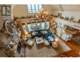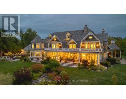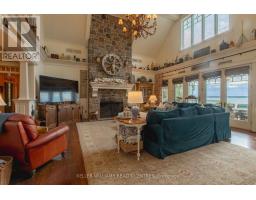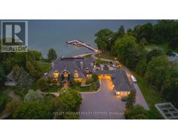 A rare opportunity to own one of Lake Simcoe's most preeminent Lakefront Estates. Set on nearly 7 acres with 280' of prime shoreline, this classic and elegant residence combines 100 year old charm & timeless craftsmanship of the Hamptons with resort-style amenities for an unparalleled lifestyle. A grand fieldstone fence, over a century old, frames the 700' frontage & sets the tone for the elegance within. Inside, every detail has been thoughtfully curated: Brenlo moldings & doors, bead board walls, 12" baseboards, tin & coffered ceilings, & replica antique push-button switches add period charm. The bespoke Bloomsbury kitchen, butlers pantry & baths feature marble counters, porcelain sinks & Gingers plumbing fixtures, 7 bedrooms & 8 bathrooms are appointed with marble and hexagon tile flooring. Rich dark stained Hemlock floors flow throughout, anchored by 8 fireplaces: 4 wood burning, 4 gas, creating warmth & intimacy. A 20' high backlit stained glass domed ceiling is the highlight of the breathtaking main hall with 2 ornate staircases and B/I bookcases. Multiple staircases connect all levels, while walkouts lead to expansive verandas, terraces & balconies with incredible lake views & year round sunsets. A 60' covered porch overlooks the lake, perfect for hosting. Outdoors, indulge in 280' of sandy beach, a 200' permanent dock with 3 boat slips & an insulated & drywalled 2250 SQ' 5 bay garage & a separate 800 SQ' garage used for landscape equipment & storage. Lusciously landscaped with perennial gardens, a fenced vegetable garden, tennis court, & an extraordinary 2,700 SQ'. patio with a historic circular bronze fountain & fieldstone fireplace create a private sanctuary. The open breezeway, black slate terraces, cedar shake roof, & Copperwork eaves exemplify enduring quality. This estate is more than a home it is a legacy property designed for family, entertaining & waterfront living at its finest. (id:47351)